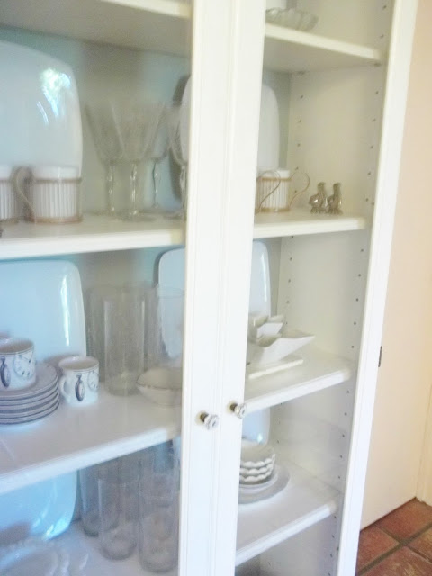 How about painting my dish cabinet white and the inside back panel in Sea Glass?