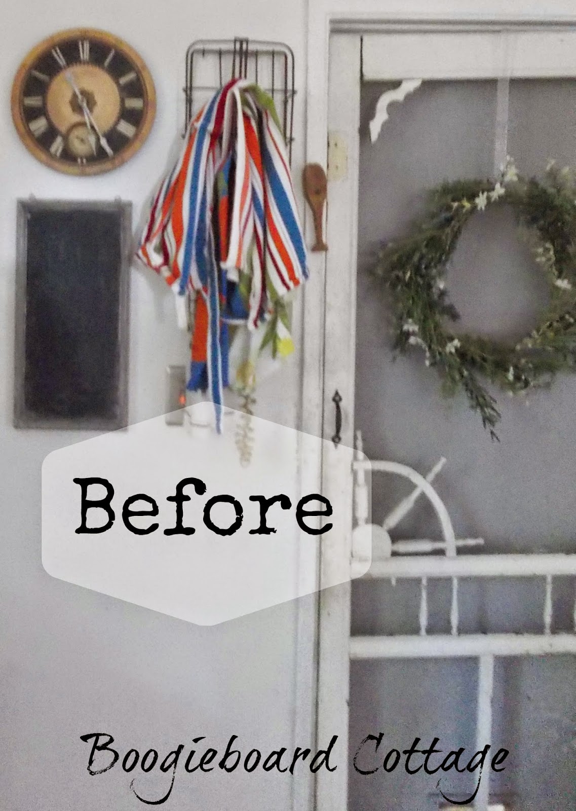 Oh, and on a side note, my hubby made this little wooden boat paddle latch for our shabby screen door awhile back, cute huh? He thought of it all by himself and surprised me. What a sweetie.